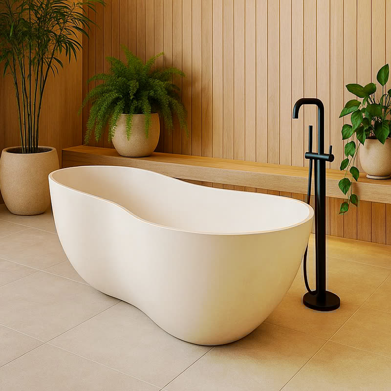 Seu formato orgânico dialoga perfeitamente com projetos contemporâneos, trazendo leveza ao espaço e criando um ponto focal de sofisticação. A borda infinita reforça a sensação de continuidade e amplitude, enquanto o interior amplo oferece o equilíbrio ideal entre ergonomia e estética.